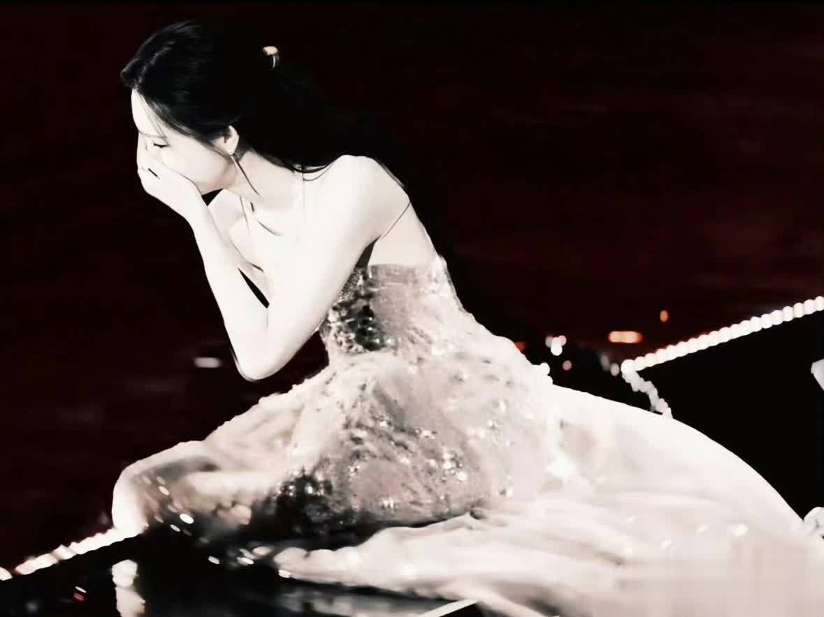 她因高跟鞋踩到裙摆失衡跪摔,裙摆如“白鲸靠岸”铺展,发丝飞扬的姿态被镜头精准捕